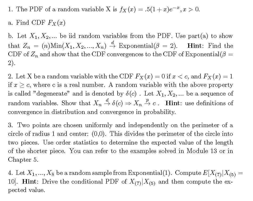 1. The PDF of a random variable X is fX(x) = :5(1+x)eô€€€x; x >...