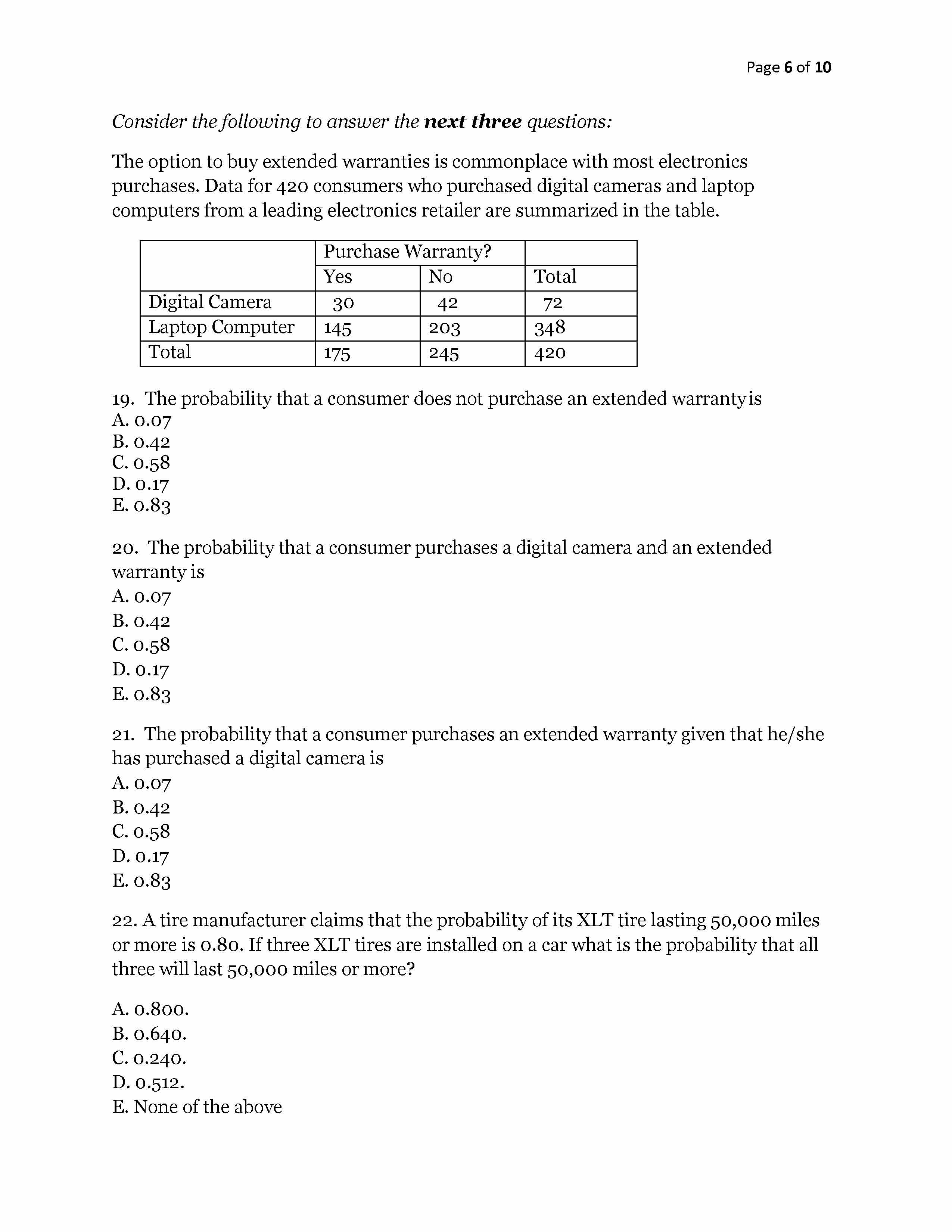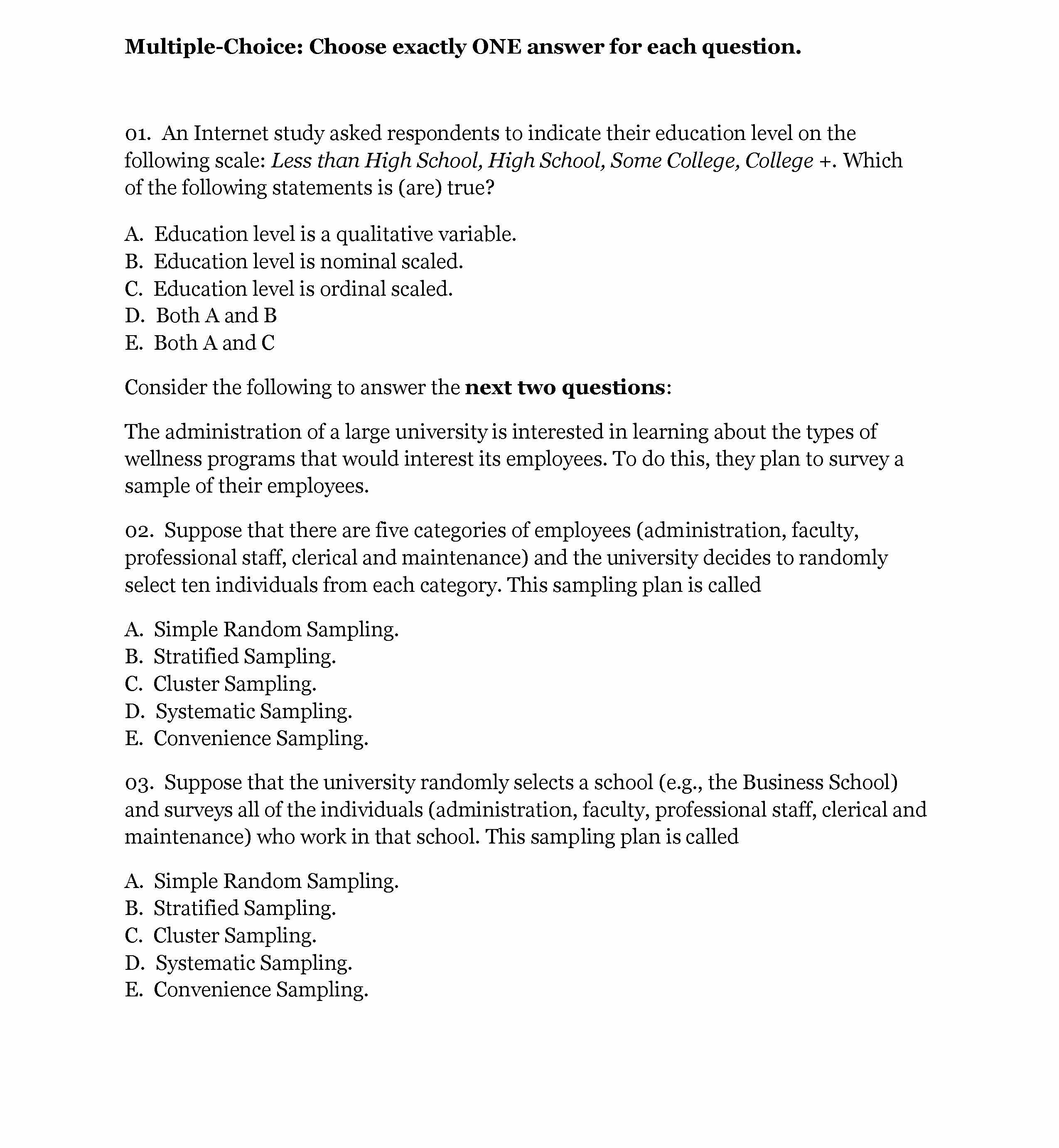 Home Homework Library Mathematics Advanced Statistics Multiple-Choice: Choose exactly ONE answer for each question. 01. ...