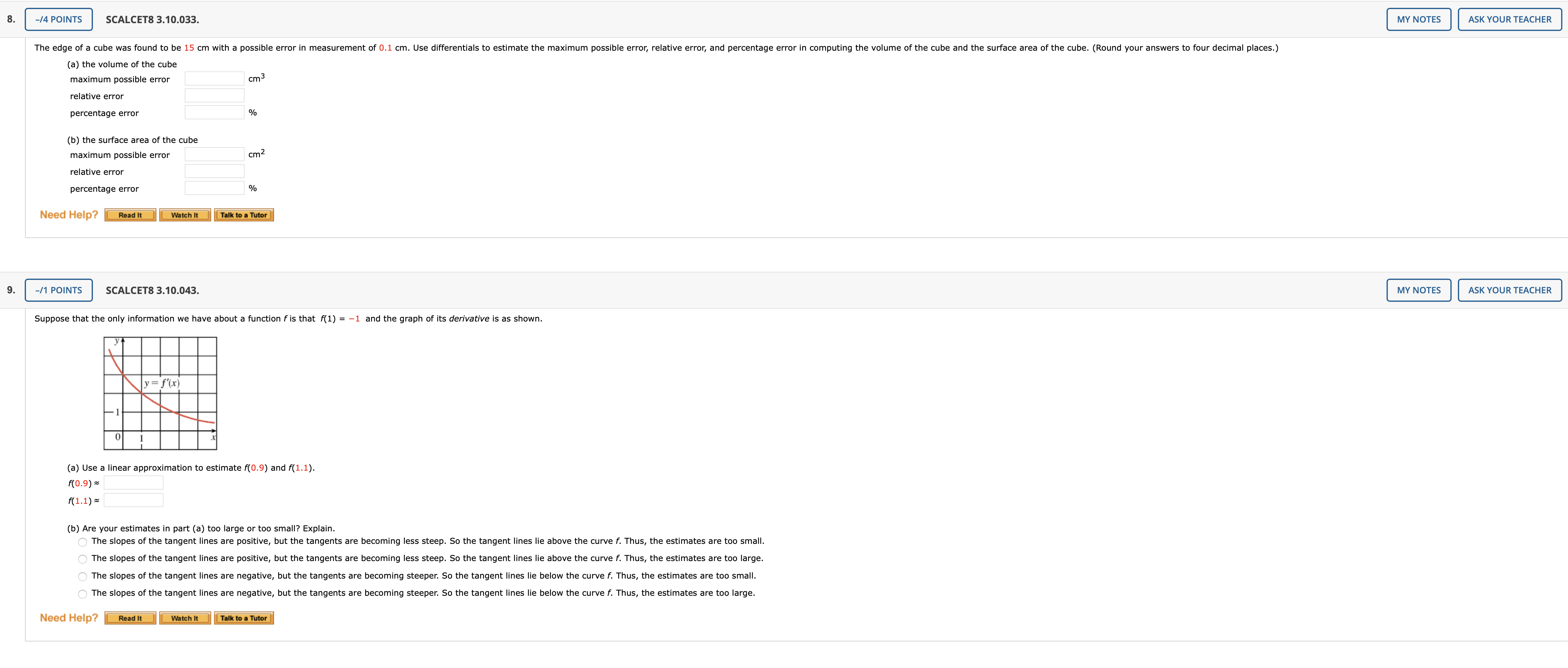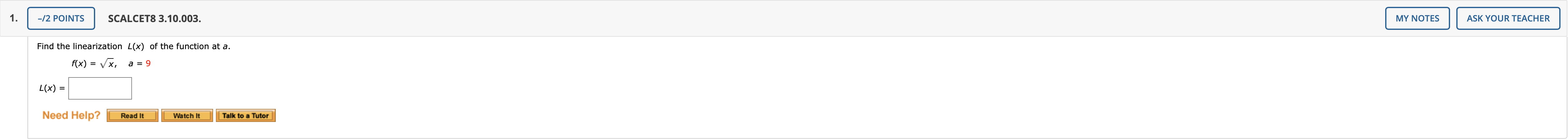 1. -/2 POINTS SCALCET8 3.10.003. MY NOTES ASK YOUR TEACHER Find...