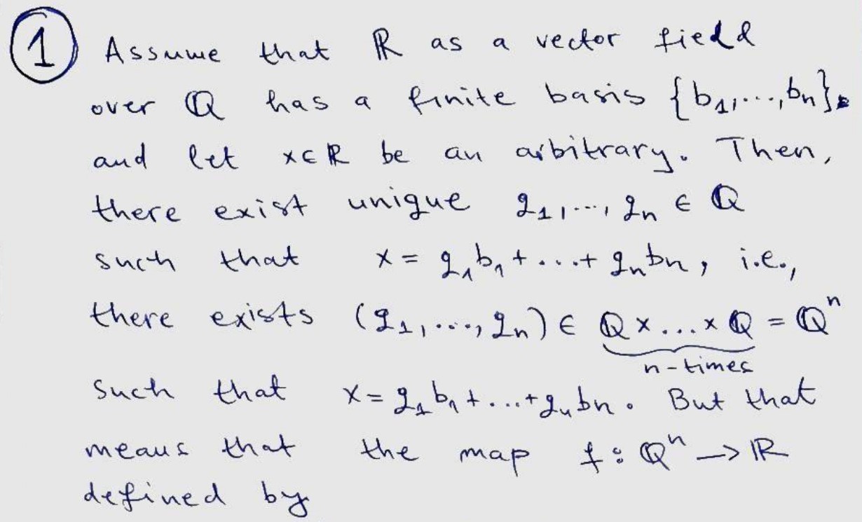 Show that R, considered as a vector space over Q, does not have a f...