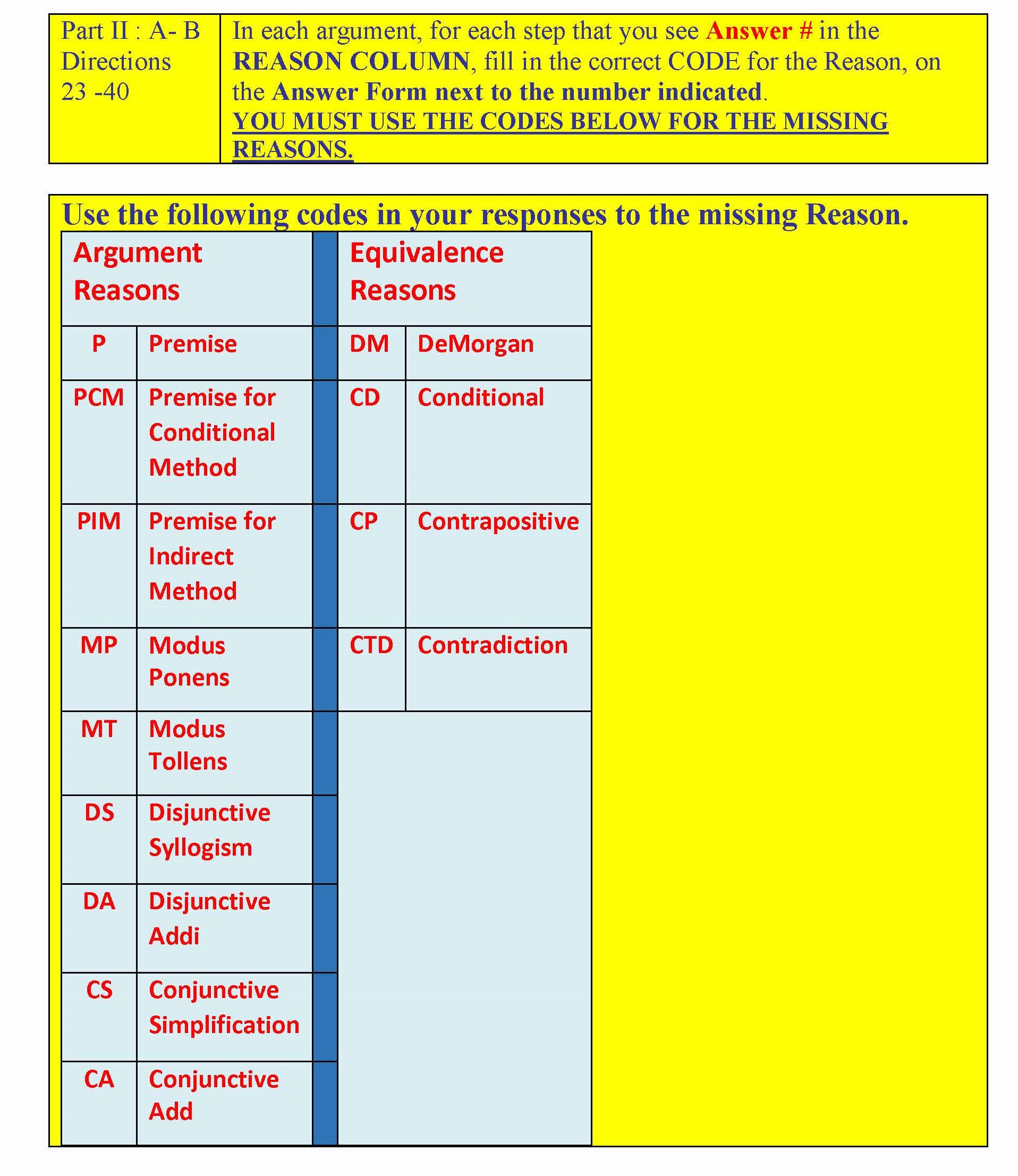 Part I : A- B Directions 1-22 You will see Answer # in the REASO...