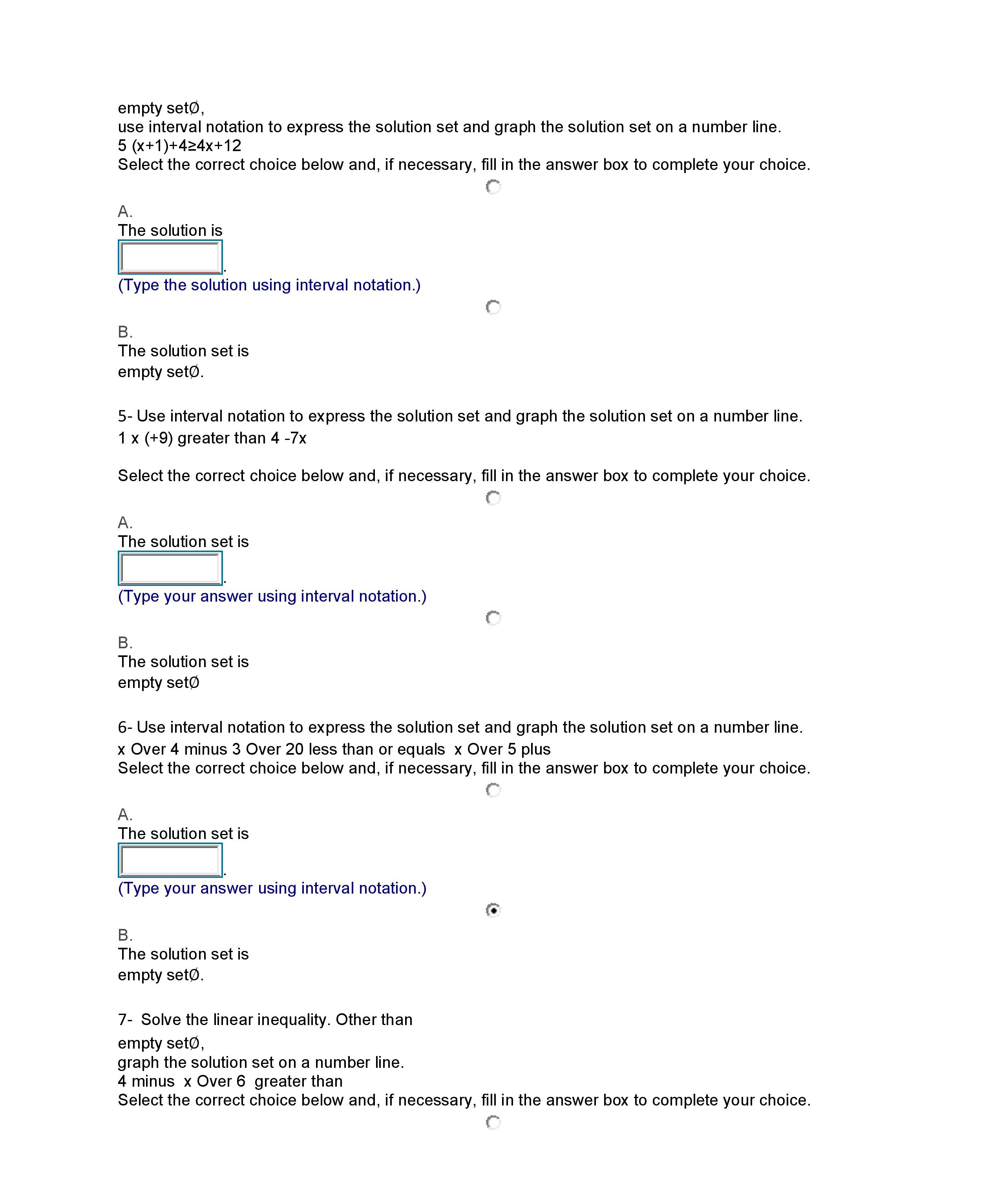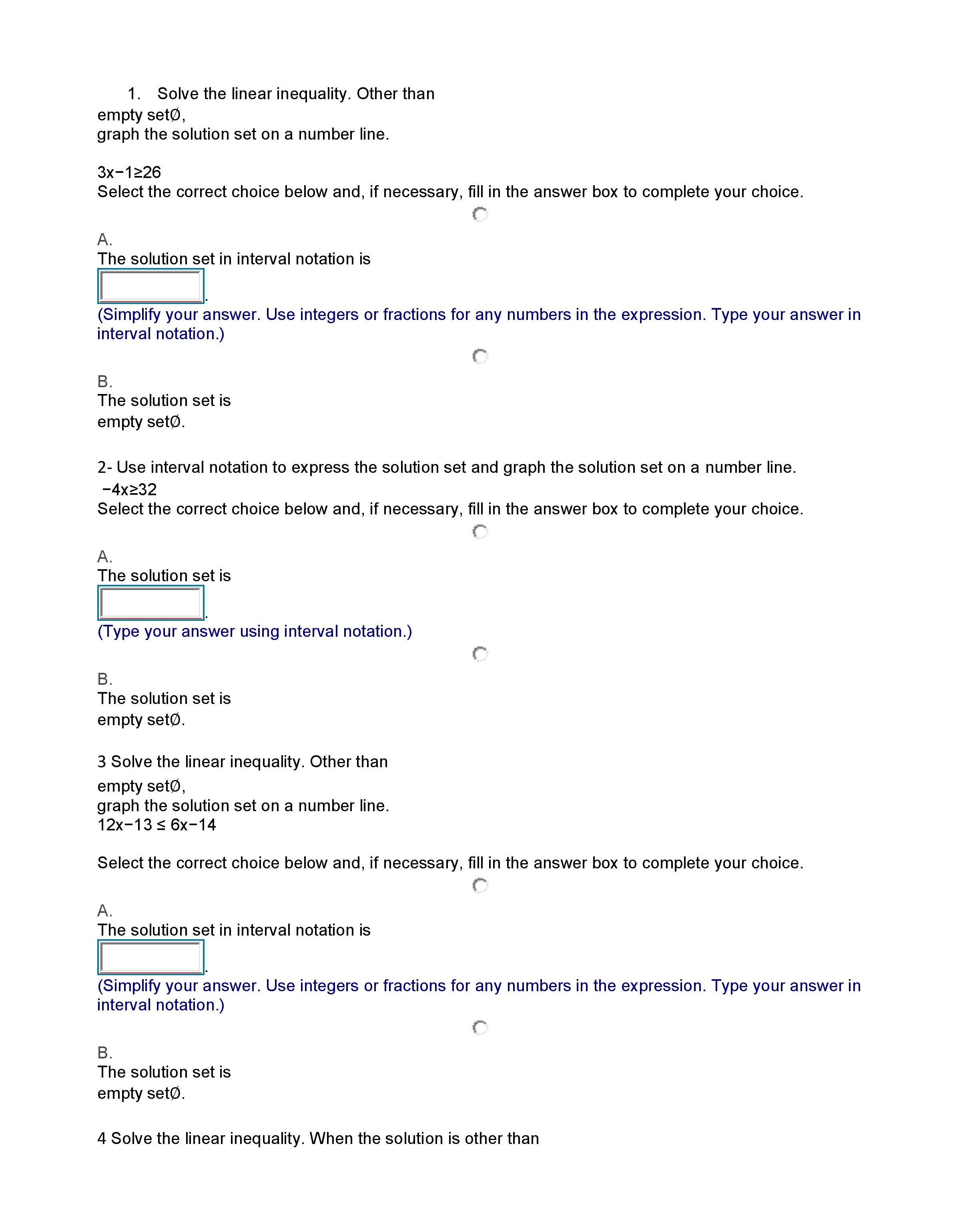 1. Solve the linear inequality. Other than empty set0, graph the...