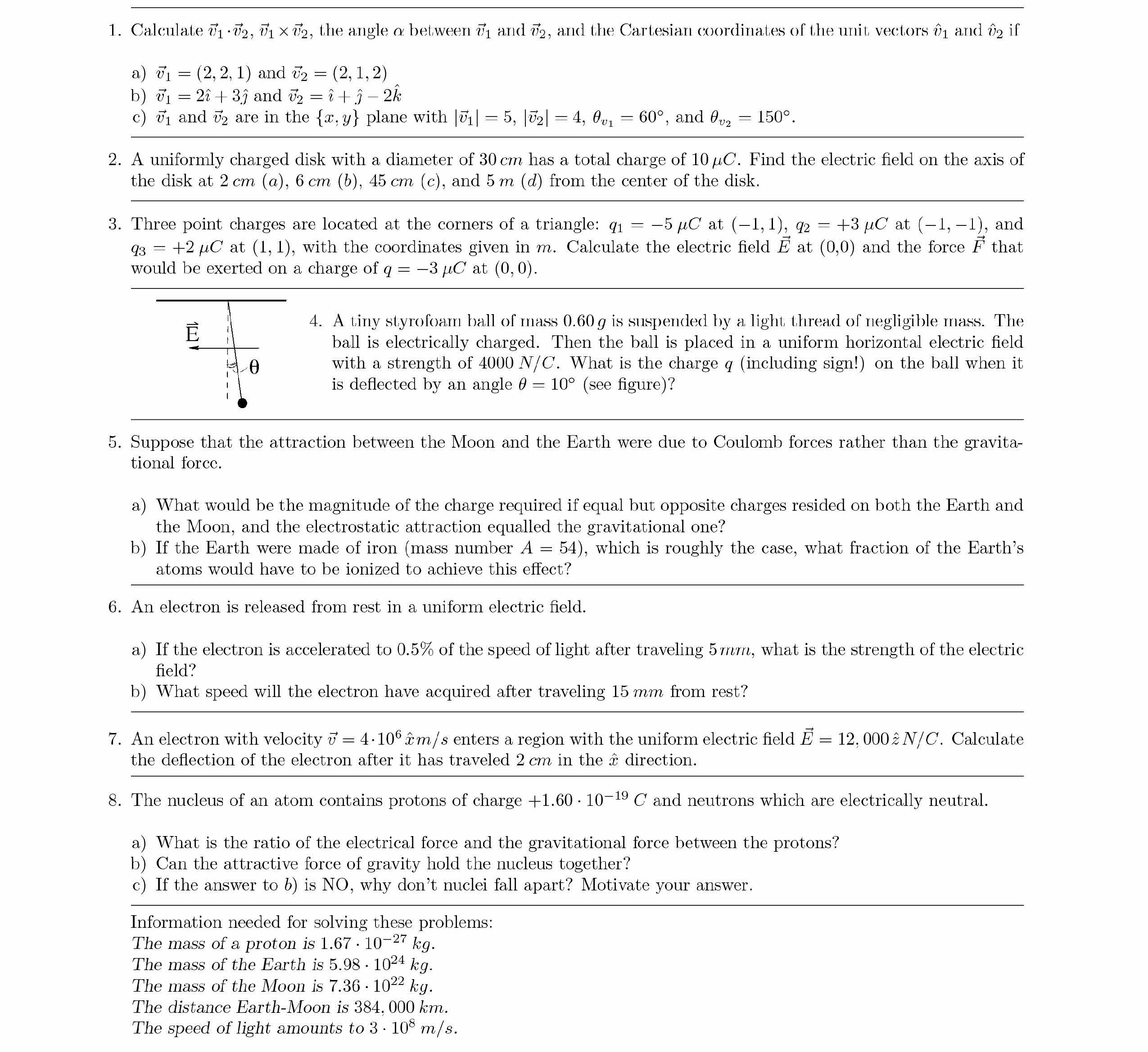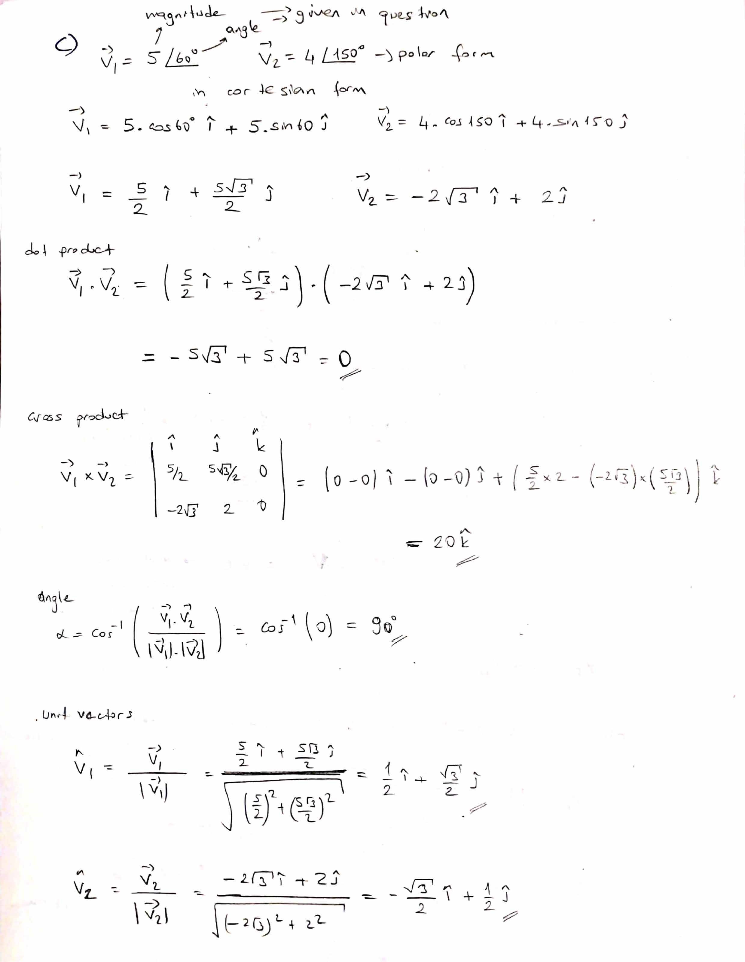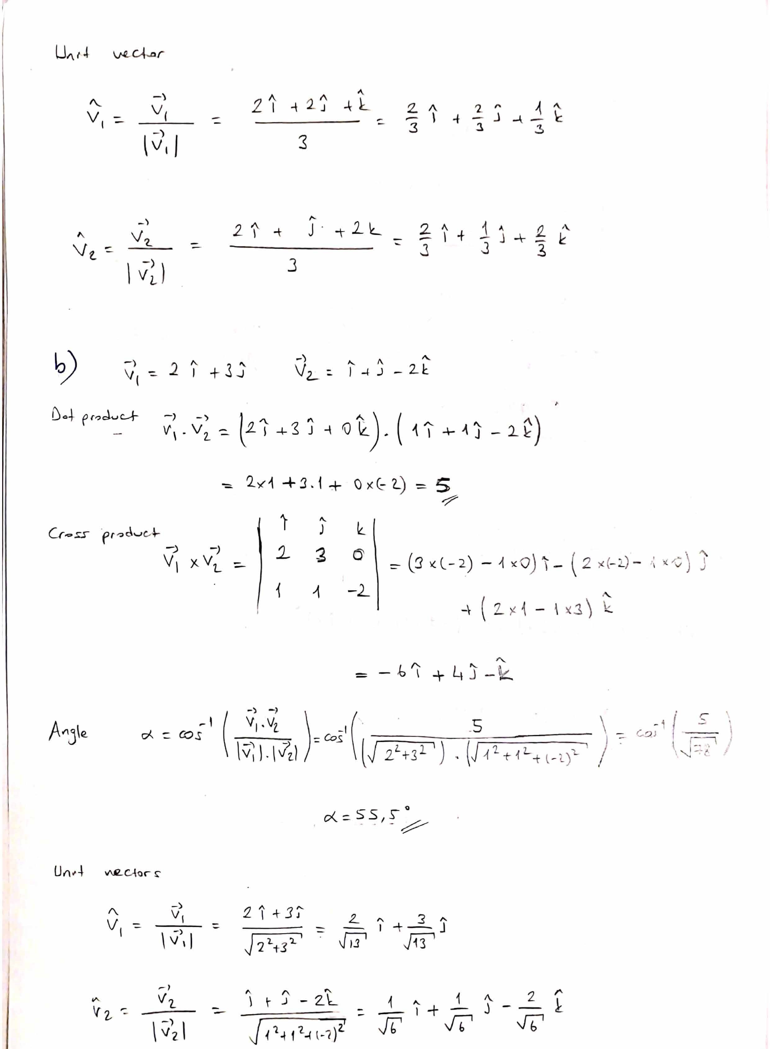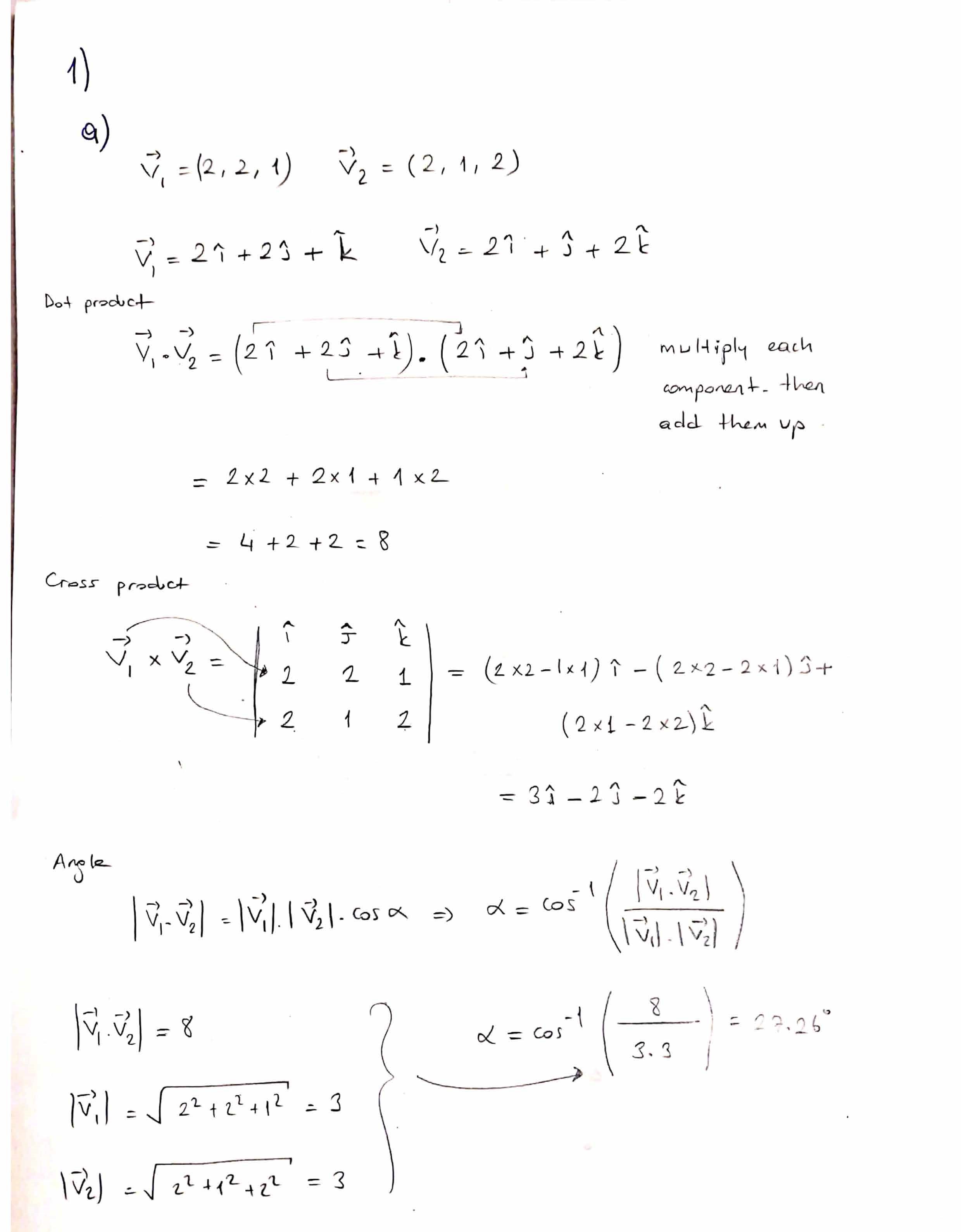 1. Calculate 01.02, UT X U2, the angle O. between VT1 and V2, and t...