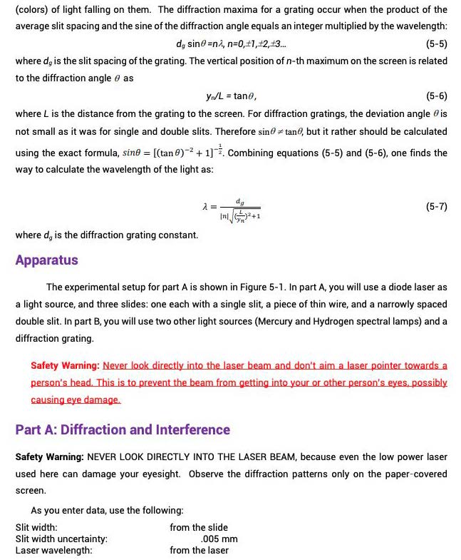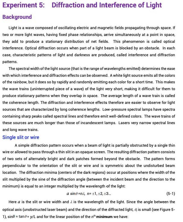 Experiment 5: Diffraction and Interference of Light Background Li...
